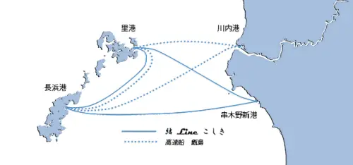 | 串木野ー里港 | 30 | 1:15 | 2800 | 10670 | 結 Line こしき | 1日2便 |