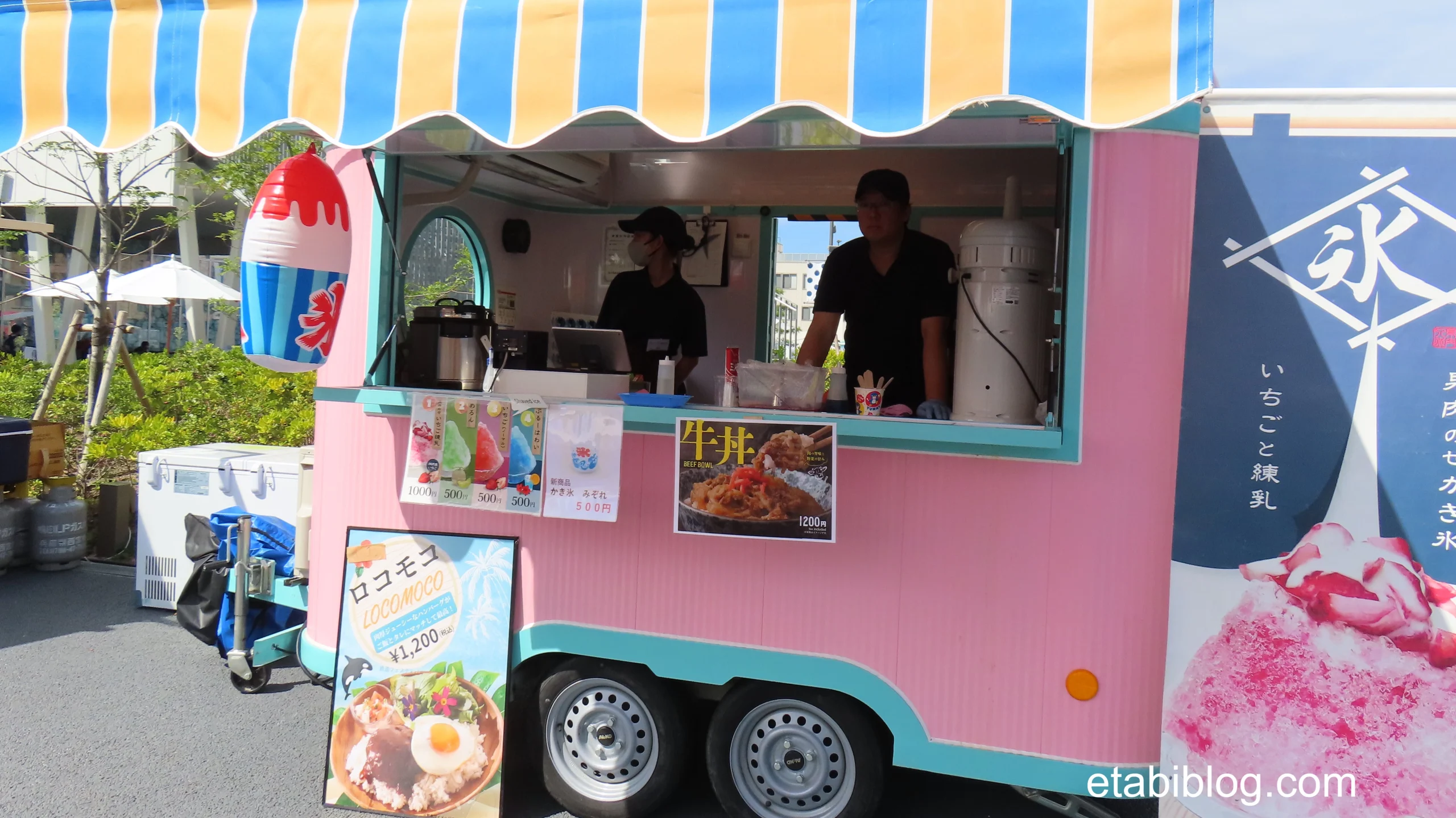 2025年9月追記:①キッチンカー場所移動。②ついにご飯物登場。牛丼とロコモコ。